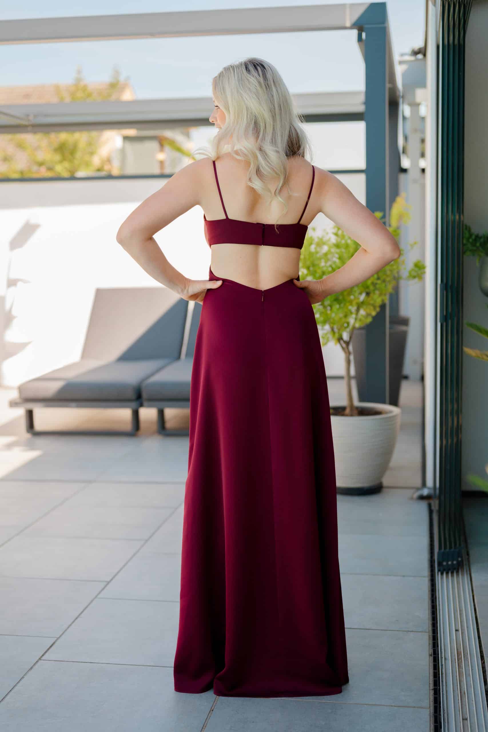 Das Oxana- Kleid strahlt moderne Eleganz aus, mit einem gekreuzten Oberteil und auffälligen Cut-outs an den Seiten. Der tiefe V-Ausschnitt und der offene Rücken verleihen diesem Kleid einen sinnlichen und stilvollen Look. Die schlanke Passform in Kombination mit dem weichen, fließenden Stoff macht dieses Kleid ideal für Brautjungfern, die eine raffinierte, trendige Ausstrahlung bevorzugen.